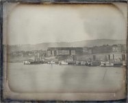 The Fontayne and Porter Cincinnati waterfront panorama was photographed from about 2 km away in the town of Newport, KY, on the southern shore of the Ohio River. Three years after it was taken, it traveled across the Atlantic to be exhibited at The Great Exhibition of 1851, a showcase of British industrial, technical, economic, and military prowess, held at the Crystal Palace in Hyde Park, London. The panorama of this frontier city was greatly admired, and both photographers won awards for their technical achievement with this new medium.