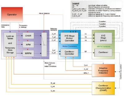 Figure 1 - Schematic of generic cantilever controller, including low-level motion controllers, as well as high-level characterization and detection algorithms.