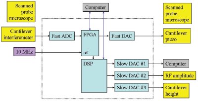 As can be seen in Figure 2, the signal path is SPM—ADC—FPGA—DAC—SPM. The scanned probe microscope system