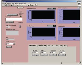 Figure 4 - Screenshot of the LabVIEW user interface (National Instruments, Austin, TX), which controls the hardware by setting control registers in the FPGA. The software also monitors the estimated frequency shift of the resonating cantilever.