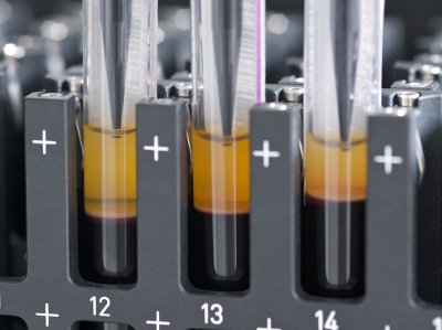 Figure 4 – The easyBlood workstation is a high-throughput, fully integrated workstation that enables technicians to reliably pipet the desired layer of primary blood samples, including the buffy coat.Blood sample preparation for biobanking storage is another area that requires difficult extraction and handling techniques. Blood fraction layers (plasma, buffy coat, and red blood cells) are difficult to extract accurately and are critical for research applications. Automated pipettors, such as the Microlab easyBlood STARlet workstation (Hamilton) (Figure 4), eliminate strain on the eyes and mixing of the layers. The workstation employs state-of-the-art imaging technology to identify the desired layer of primary blood samples, including the difficult buffy coat.