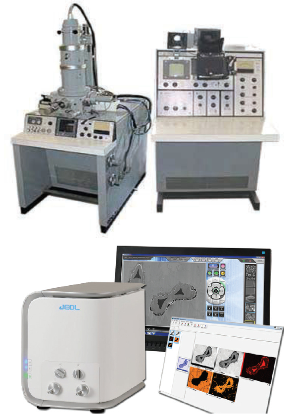 Figure 1 – Top: JSM-1—resolution 25 nm, magnification 30,000×. Bottom: NeoScope—resolution <20 nm, magnification 60,000×.