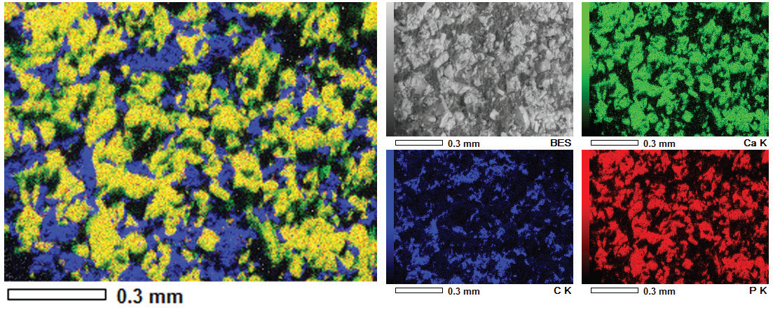 Figure 11 – Backscatter electron image and EDS hyperspectral map data of tablet.