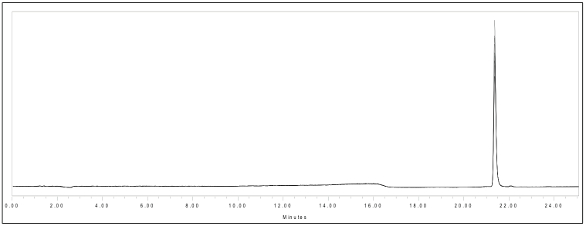 Figure 1 shows the overlay of the selected ion recordings (SIRs) for all 17 amino acids, using the optimized conditions described above. The analysis time was under 25 minutes. Table 3 shows the retention times (RTs) and SIR windows/values used for each amino acid. An overlay of 10 replicates of 0.1 μmol/mL histidine standard is shown in Figure 2. A five-level calibration suite was used, covering a concentration range of 0.006 to 0.10 μmol/mL, except for alanine and cysteine, which covered a concentration range of 0.06 to 1.00 μmol/mL. Figure 3 shows the representative calibration data for aspartic acid, glycine, histidine and methionone. All amino acids followed a quadratic (2nd-order) fit.