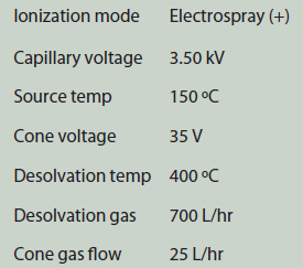 HPLC method parameters are shown in Table 1; Table 2 lists the MS and ionization method parameters.