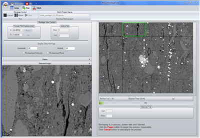 The JEOL Correlative Microscopy Suite (JCMS) (Figure 1) optimizes the imaging flexibility of JEOL scanning electron microscopes. Functions include: 1) Navigation across the sample using a low mag optical image as reference, 2) image overlay of corresponding EM and OM sample images, 3) montage of multiple images acquired automatically in real time and then stitched together into large area canvasses, and 4) StageLink of multiple OM and EM image locations.