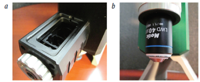 Mobile μRaman and μ-BioRaman microscopes feature multiple sample modalities. As shown in Figure 1, they contain sample holders for cuvettes and vials (Figure 1a) as well as microscope slides and SERS substrates (Figure 1b). As a result, the instruments are able to handle everything from powders, liquids and fibers to crystals, gunshot residue and dried blood samples.